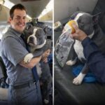 Heros do fly on planes… So glad they stepped up to help the baby. Darcy wasn’t a tiny lap dog — she was a big blue-grey and white Bulldog with a blocky…