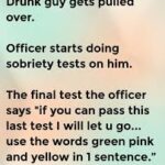Drunk guy gets pulled over. Officer starts doing sobriety tests on him. The final test the officer says “if you can pass this last test I will let u go… use the…