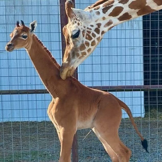 on the 31st of July, Brights Zoo in Tennessee welcomed a new baby giraffe without any spots to the world. Her coat is a solid brown color.