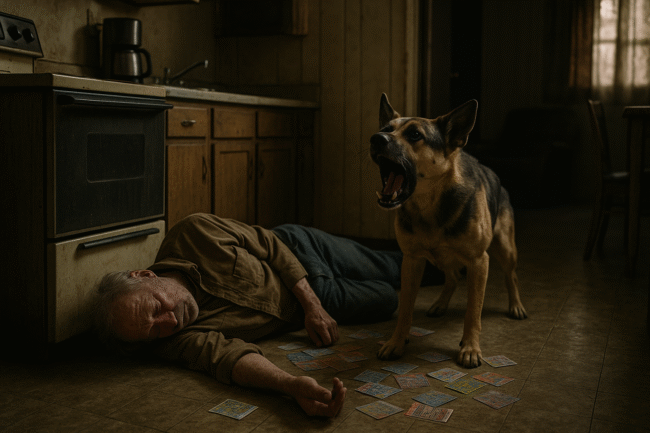 “The old man collapsed on the kitchen floor, lottery tickets scattering across the tiles—his voice too weak to call for help.”