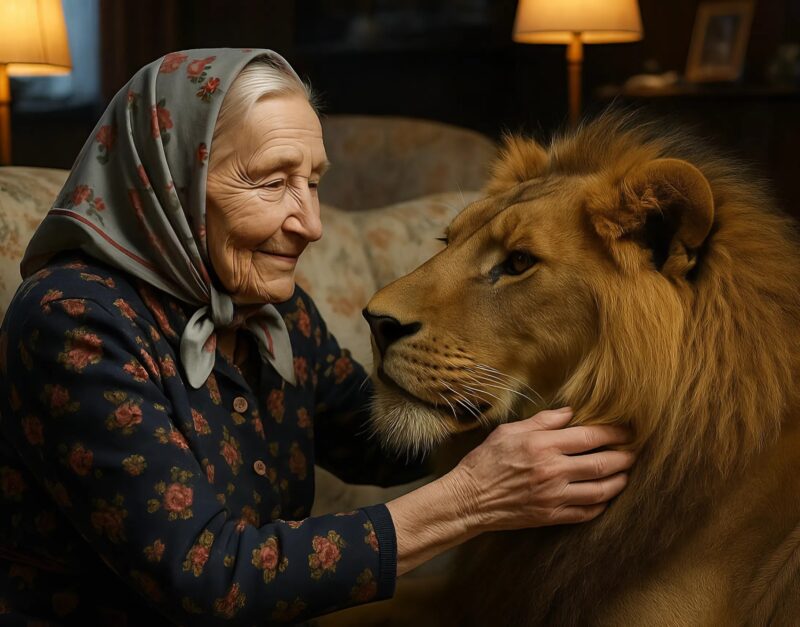 But the grandmother paid no attention. At night, the “kitten” slept beside her, purring in its own way – a low, vibrating growl – while she stroked its soft mane as if it were a beloved cat.