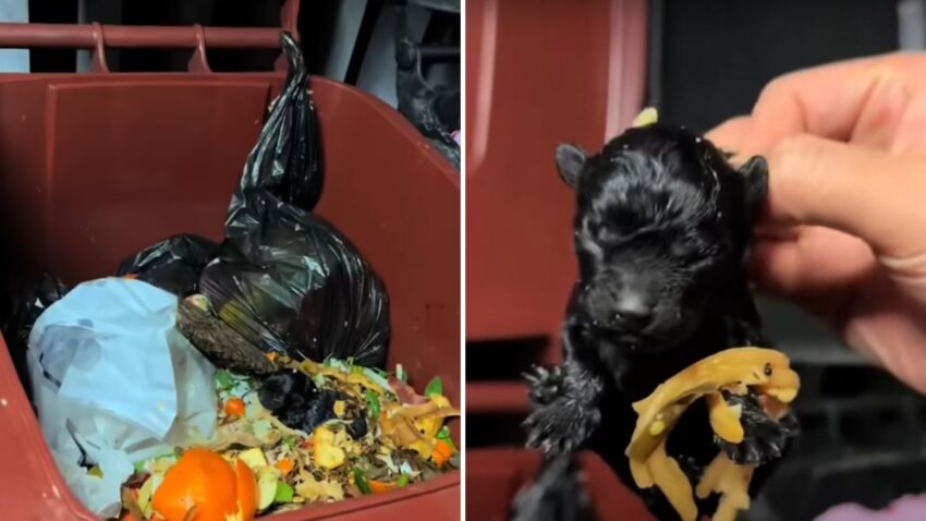 What he found left him completely stunned: a tiny, shivering puppy, crying out from the depths of the can. This poor thing, barely a week old, had been discarded like trash, abandoned without a second thought.