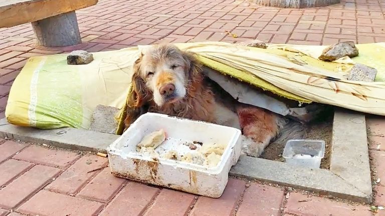 It was an ordinary afternoon when passersby noticed an old Golden Retriever lying motionless on a dusty sidewalk, wrapped in a faded quilt. At first glance, some thought he was merely resting. But as they drew closer, it became heartbreakingly clear that the dog had been abandoned—left to face the end of his life alone. His eyes were half-closed, his breathing shallow, and his frail body barely moved.