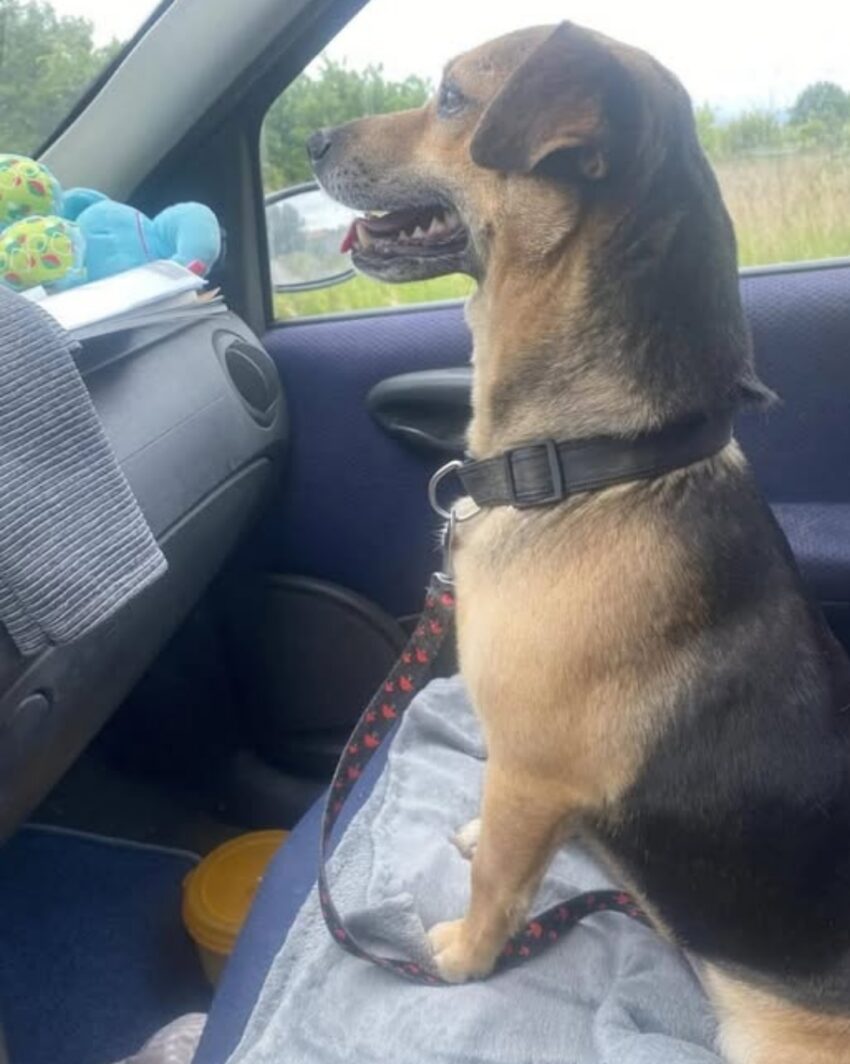 But Jack himself didn’t carry the weight of that truth for long. His spirit was far too big to be dimmed by the cruelty of being abandoned. Almost instantly, he slipped into our lives like he’d always belonged there. He claimed the passenger seat on car rides, curling into it with a quiet dignity, as if to say,