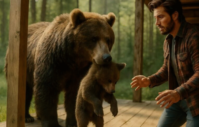 I stepped outside and saw a huge bear standing on the porch, holding a cub in its jaws: As I stared at them in shock, the mother bear gently set the cub down on the ground — and then did something completely unexpected
