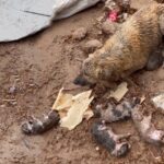 • October 18, 2025 by admin Helpless Mother Dog Gazes Down at Her Stranded Young Puppy