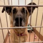 Chance licked his hand, then turned toward a trembling dog huddled in a nearby cage. Quietly, he lay down in front of it, tail softly wagging, as if to say, I was there once. You’ll be okay.