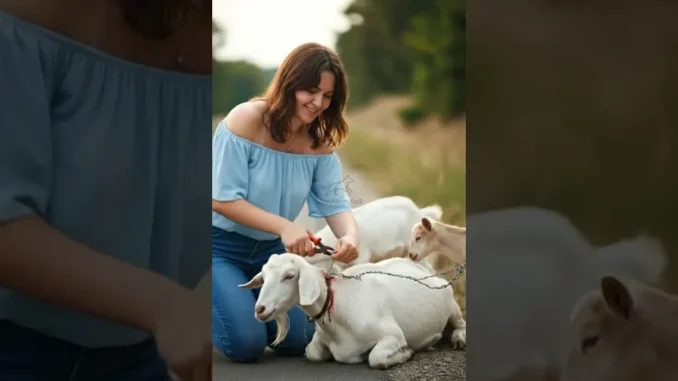 With gentle and steady hands, she meticulously untangled the sharp metal, making sure not to cause the goat any more pain. Her focus was absolute, driven by a simple, powerful desire to help a creature in need.
