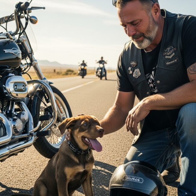He rode to the nearest town, the puppy sleeping against his chest. Locals at a roadside diner smiled when they saw the sight — a tough biker cradling a tiny pup.
