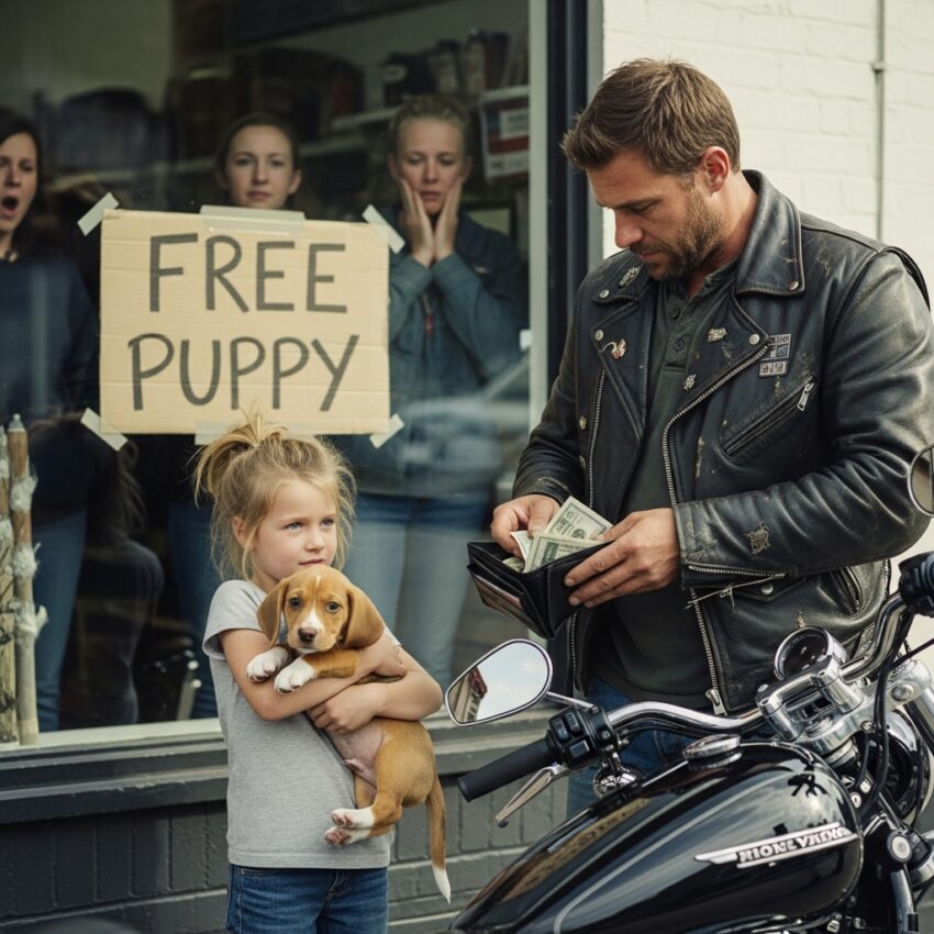The puppy’s heartbeat fluttered against the girl’s chest. Inside, a bell chimed; people glanced through the glass. “I can’t pay,” the girl said, eyes bright with panic.