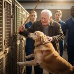 Everyone turned. A broad-shouldered man stepped out, face stiff with something colder than rules. He held a clipboard with a breeding kennel’s letterhead. “Scout belongs to me,” he said, chin tilting toward the dog. “Paperwork says so.”