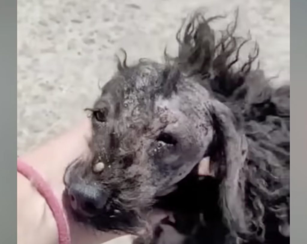 Lynch, a one-year-old poodle, was the first to be found. He had wandered nearly a hundred kilometers away from the place he once called home, perhaps in search of food, warmth, or a kind hand to save him. When rescuers finally reached him, their hearts sank. His once-curly coat had turned into thick, matted tangles so hard and heavy it was like carrying a coat of concrete. Beneath that tangled mess, they found sores, open wounds, and dozens of ticks clinging to his fragile body. He was painfully thin, his ribs showing through his skin, his eyes dull with exhaustion but still holding a faint glimmer of hope.