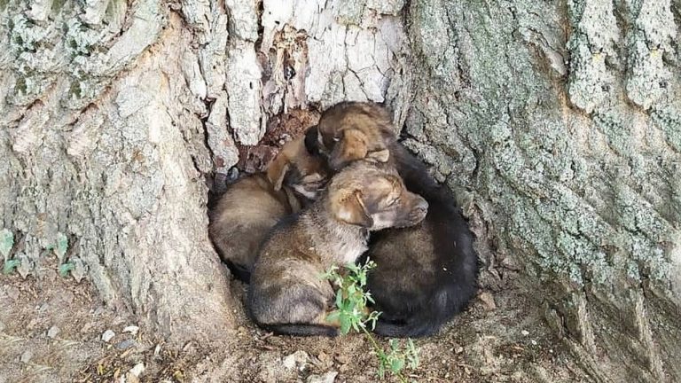 A kind-hearted woman happened to pass by and heard their faint cries. Something in those tiny, desperate voices stirred her soul. Without hesitation, she knelt beside them and gently gathered the trembling pups into her arms. Her heart ached at the sight—so small, so frail, yet still breathing, still fighting. She brought them home, offering them bowls of food that they devoured as if they hadn’t eaten in days. Their hunger was deep and urgent, the kind that comes from days of emptiness. Watching them eat, she realized just how long they had been left to suffer alone.