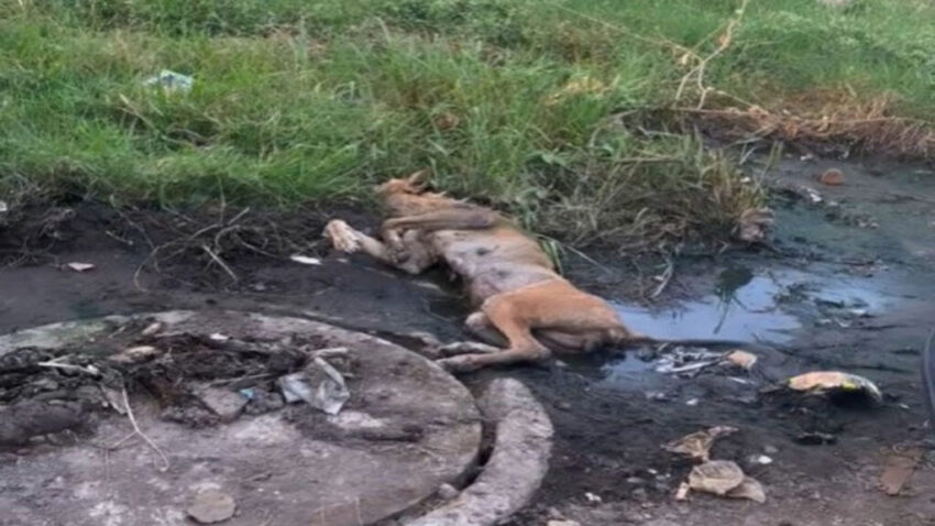 This heart-wrenching scene of a dog left to fend for itself under severe conditions highlights the plight faced by many animals every day.