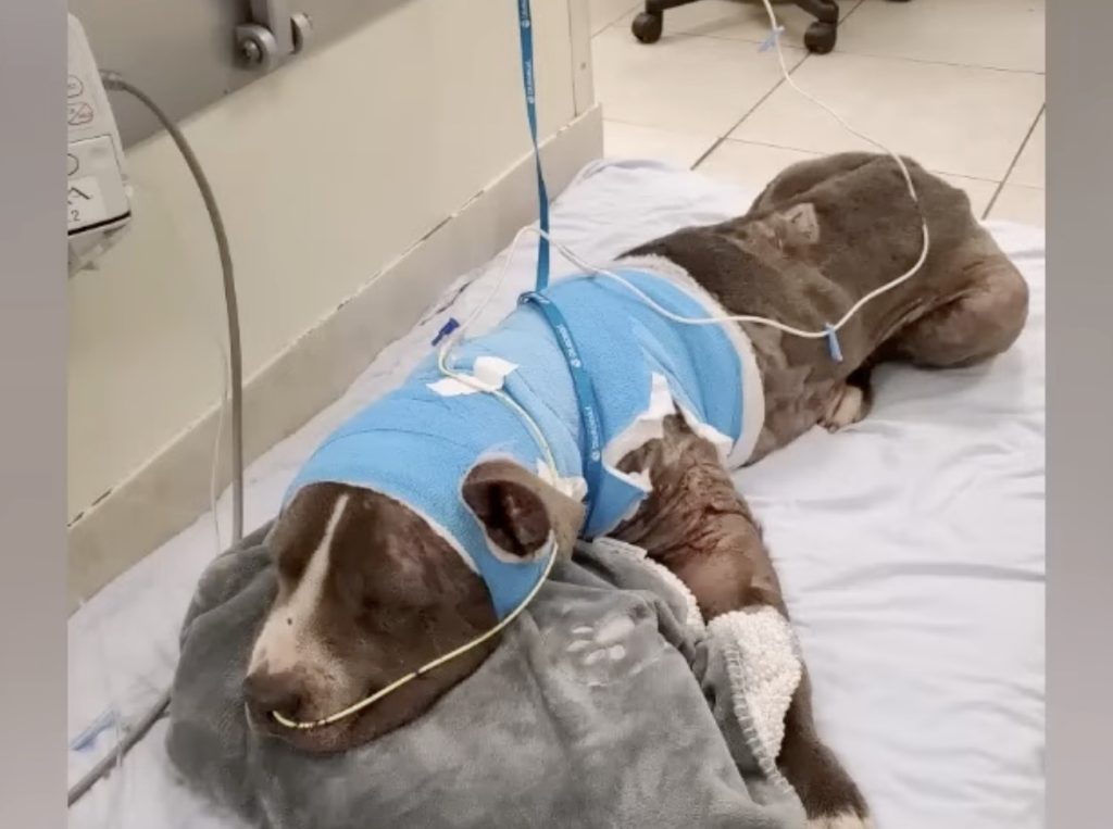 Days passed, and each one brought new challenges. Elijah’s body was fighting hard to heal, but his spirit seemed even stronger. The veterinarians described him as “the gentlest soul” they had ever met. Despite everything that had been done to him, he showed no signs of anger or aggression. When nurses approached, he tried to wag his tail, even though it clearly hurt to move. It was as if he wanted to reassure everyone that he was grateful, that he still believed in kindness.
