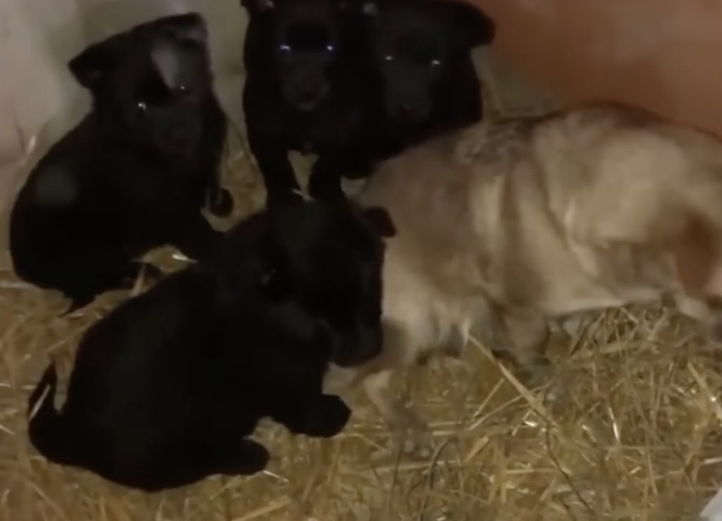 Then, one morning, the rhythm of their days changed forever. A few kindhearted people stopped when they saw her huddled with her pups near the cold metal pumps. Their hearts ached at the sight of this small family trembling in the freezing wind. They knew instantly that this was no place for new life to grow. With careful hands, they wrapped Busya and her puppies in warm blankets, their voices soft and reassuring. Busya hesitated at first—she had lived by those roads for three long years and had learned to be cautious—but something in their gentle tone made her trust. It was as if she could sense that these humans carried warmth not just in their coats but in their souls.
