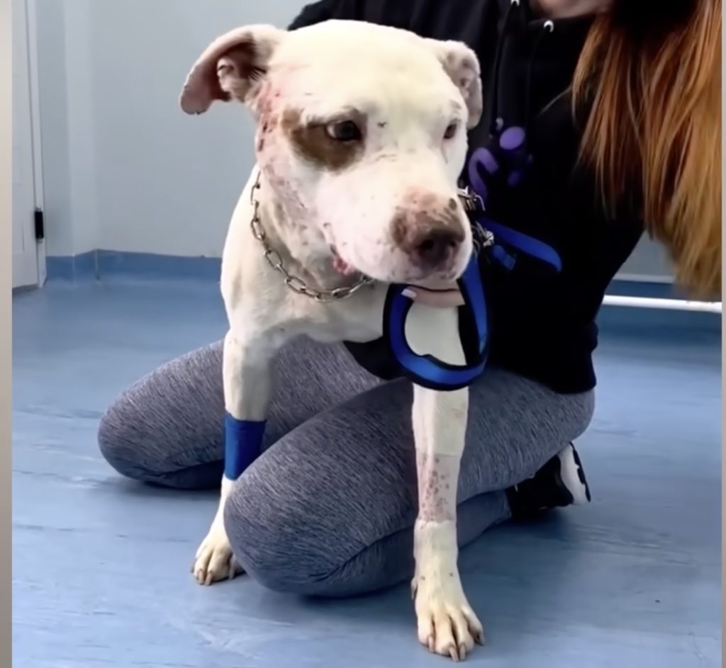 They lived at the edge of a forgotten path, bound by thick, rusted chains that cut deep into their fragile necks. The two dogs—once full of life, now shadows of themselves—stood trembling in the dust, their ribs visible like the branches of a tree stripped bare in winter. Their eyes, once bright with curiosity and trust, had dimmed beneath the weight of pain and hunger. Every breath seemed to carry the echo of a long, silent suffering. Their fur was patchy and dull, their skin marked by sores and old wounds. One of them, a gentle soul named Odin, carried a swelling on his head so large that even the faintest movement made him wince. The pain had dulled his gaze, yet somewhere behind those tired eyes remained a spark—a quiet wish for mercy, for love, for another chance.
