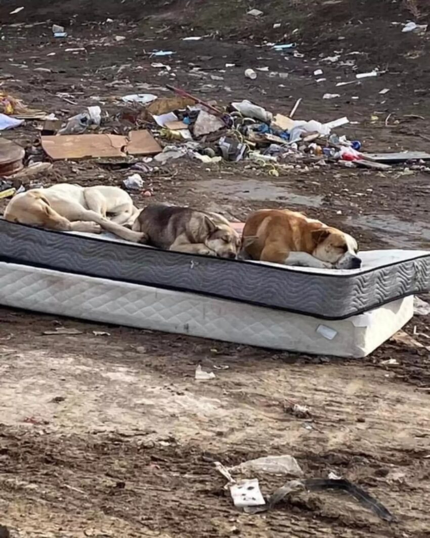 Cooper, Trixi, and Bruno once slept on an abandoned mattress in a dumpsite, huddling together for warmth and survival. They shared scraps, fear, and the only love they had—each other. Rescuers saved Trixi and Bruno first, while Cooper panicked and ran, returning to the only home he knew. Weeks later, he finally trusted enough to be rescued. All three needed leg amputations, their bodies marked by years of neglect, yet with care they learned safety, comfort, and joy. A year later, the trio reunited in a Minnesota park, instantly recognizing one another. Once forgotten, they became a family of hope—forever remembered.