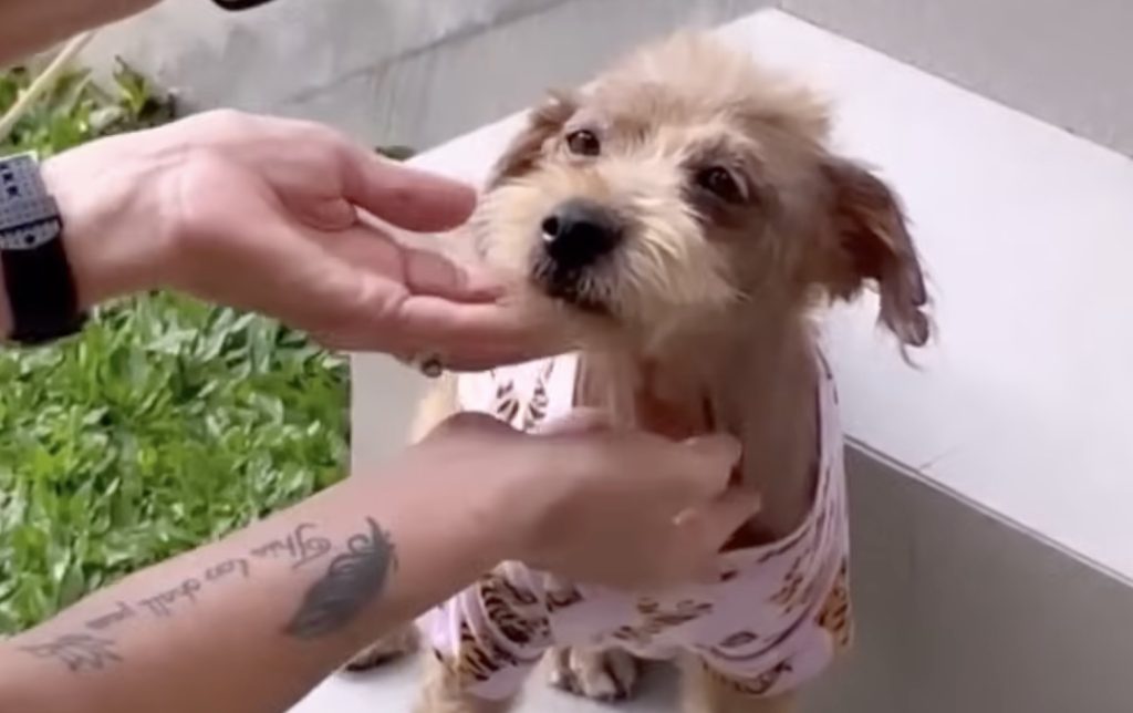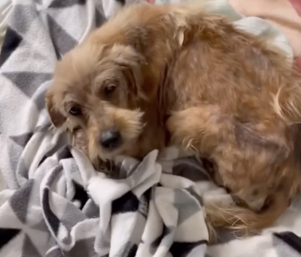 Tina was brought to a veterinary clinic for a full evaluation. While her condition wasn’t immediately life-threatening, she carried several health issues that required attention. Her skin was irritated and damaged from long-term neglect, and her walk was noticeably abnormal. The vet diagnosed her with a luxated patella, a condition affecting her knee, along with a neurological issue that caused her to move in a sideways, unsteady gait. Despite everything, Tina cooperated gently, showing a quiet resilience that touched everyone in the room.