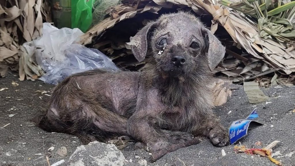 The story begins with a moment so tender and heart-wrenching that it’s impossible to forget. A tiny puppy, frail and trembling, was discovered in a neglected corner of an old hut, tucked away inside a shallow, dirty hole as if she had slowly faded out of sight. Her little body showed signs of long, quiet suffering. Her fur had thinned and clumped together from untreated skin issues, and her frame looked so delicate it seemed a simple breeze could knock her over. Yet what stayed with her rescuer most were her eyes—soft, sad, and full of a pleading warmth that seemed to whisper, “Please don’t hurt me. Please help me.” Even in her fragile state, there was a spark of hope asking to be seen.