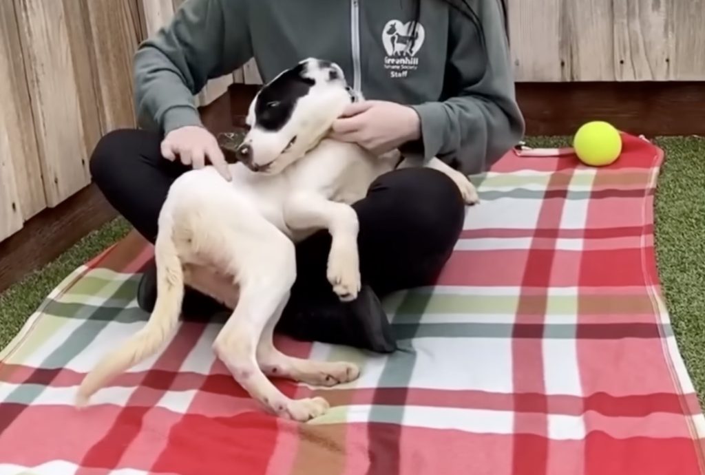 When morning broke, something beautiful happened. As the sunlight filtered through the trees, Santi’s personality began to peek through. His eyes looked brighter, his spirit a little lighter. And then, out of nowhere, his tail gave a tiny wag—small, shaky, but full of meaning. It was Santi’s first sign of real joy, a quiet thank-you to the man who had stopped for him when no one else was around.