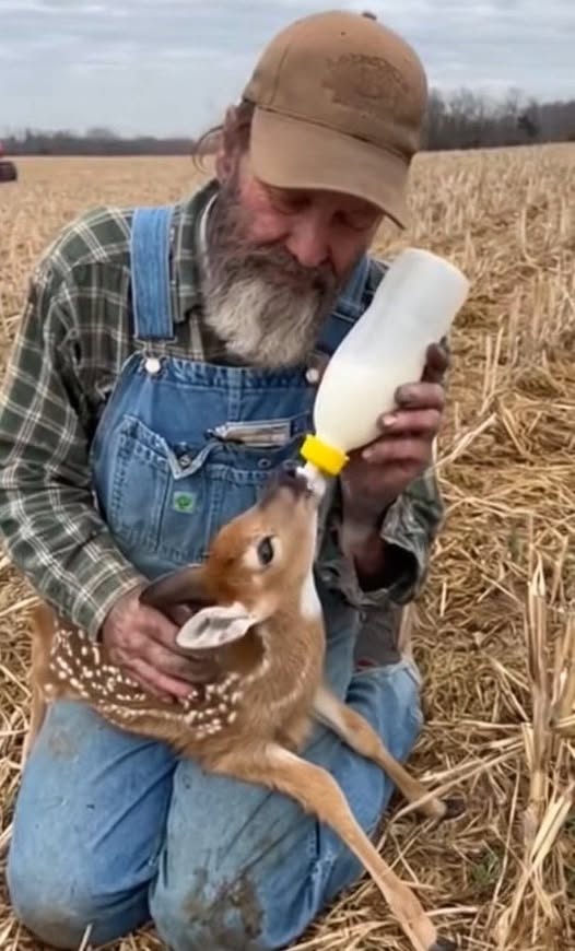 • November 22, 2025 by admin He was just trying to finish harvesting his field. Then he heard a tiny sound — There, in the stubble, was a newborn fawn, impossibly small!