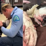 At the clinic, the true extent of their ordeal unfolded. Muddy’s leg required immediate surgery: Dr. Somsak performed a complex osteotomy, inserting pins sourced from a Bangkok supplier via overnight drone delivery—a first for the hospital. Blood tests revealed the family carried heartworm but tested negative for distemper, a statistical anomaly in such malnourished strays. Puddles’ scars told a story of repeated defense; biopsy results showed healed abscesses from porcupine quills, suggesting skirmishes in the surrounding scrublands. The puppies, miraculously, were parasite-free, likely due to Muddy’s vigilant grooming. “These dogs didn’t just survive—they thrived against odds that would fell most,” Dr. Somsak noted. “Muddy’s bent leg? He compensated by building muscle on his hindquarters three times denser than average. It’s evolutionary poetry.”