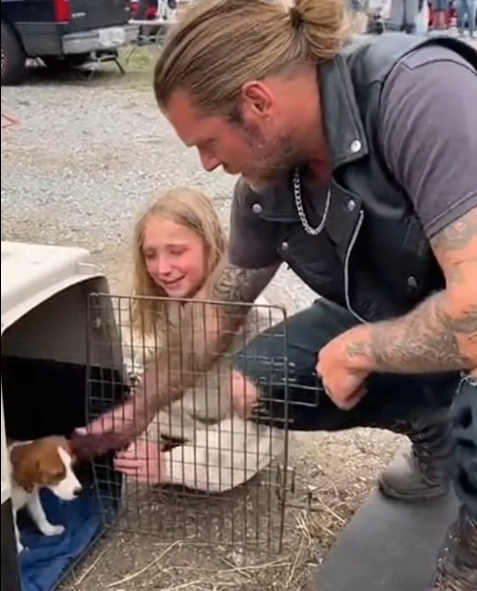 Jake Myers wasn’t the kind of man people expected to see at a family market. He was the type who looked like bad news until you noticed the softness beneath the rough edges. He saw the trembling puppy first, then the girl, then the vendor’s fist curling with irritation.