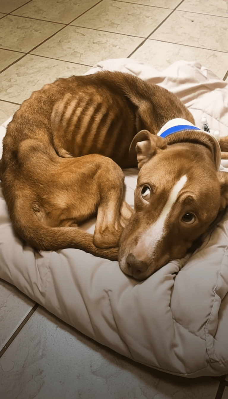 In the shadow of Bucharest’s crumbling communist-era apartment blocks, where stray dogs roam like ghosts amid the city’s forgotten corners, a tiny life hung by a thread one frigid February morning in 2025. It was the kind of discovery that stops even the hardest hearts: a malnourished puppy, no bigger than a loaf of bread, curled into a skeletal coil inside a discarded cardboard box half-buried in snow. Her ribs protruded like the bars of a cage, her hip bones sharp enough to cut glass, and her wide, pleading eyes—framed by a distinctive white blaze on her fawn-colored face—stared out with a mix of terror and faint hope. Passersby had ignored her for days, but a young street vendor named Andrei Popescu, selling roasted chestnuts to survive Romania’s harsh winter, couldn’t look away. What he didn’t know was that this emaciated pit bull mix, later named Reese, would unravel a web of unexpected secrets, from an underground fighting ring to a hidden act of sabotage, before emerging as a beacon of resilience that captured hearts across Europe.