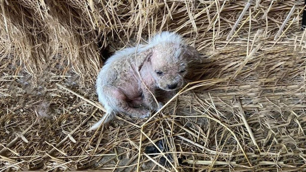 Two tiny puppies were found in Yeongcheon, South Korea, barely clinging to life. Starving, filthy, and neglected, they had no one to care for them. One was suffering from a severe case of mange—his body hairless, his skin raw and flaking, his tiny frame curled up and shaking. The other had a painfully bloated stomach, a sign of deeper internal problems. It was heartbreaking to witness the condition they were in. No animal should ever have to endure such suffering.