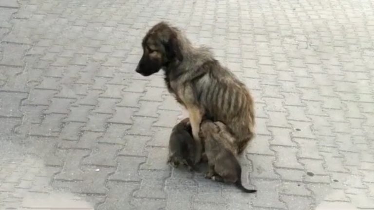 In the heart of a cold, unforgiving industrial park, a mother dog named Liza was doing everything she could to keep her six tiny puppies alive. Her body, frail and gaunt, told a heartbreaking story of neglect and suffering. Skin clung tightly to her bones, and her eyes carried a mix of exhaustion and unwavering determination. She was sick, weak, and hungry, yet she refused to abandon her babies. Despite being surrounded by uncaring strangers and aggressive stray dogs, she stood her ground, shielding her pups with the little strength she had left.