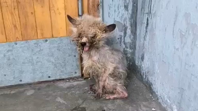 The dog was in dreadful condition. Her skin was inflamed, raw in some places, and hidden beneath patches of thick, dirty, matted fur. Scabs and parasites covered her fragile frame. The vet gave a grim initial diagnosis: demodicosis—an advanced form of mange—and a severe infestation of roundworms that had nearly blinded her. Her eyes were cloudy and inflamed, her vision all but lost to infection and swelling.