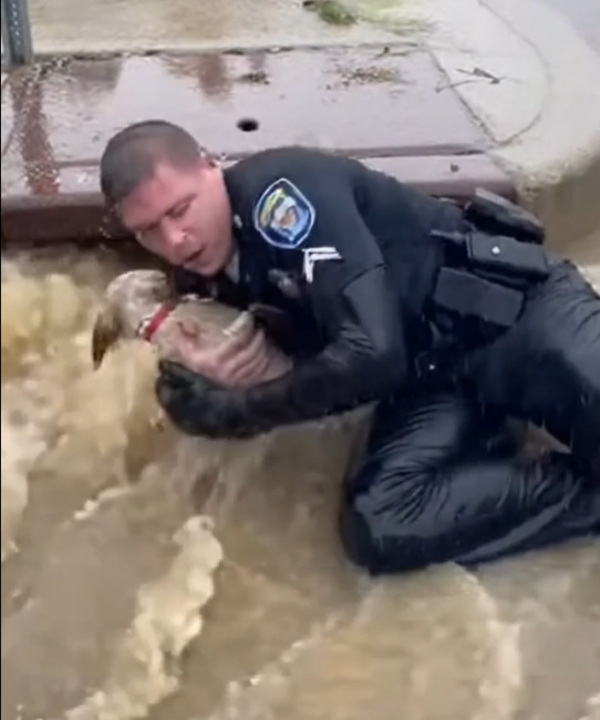 When the officer emerged from the drain, soaked and shaking, the crowd fell silent.