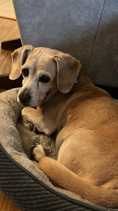 They told FFF, “Scrolling through Facebook, Stella’s Beagley eyes stopped me in my tracks. I just had to meet her. It was clear after meeting her, all this sweet lady needed was a quiet place where she would be loved for the rest of her life. We didn’t set out to adopt a hospice dog but we don’t regret it for one second. She was so polite and quiet. She was only 10 but had such a gentle old soul. She would wander over to where you were sitting and lean into pets and kisses and stare into your eyes. We are so sad we only had her for a short time. Rest in peace sweet Stellers, you were a (gem).”