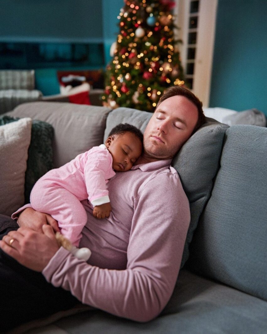 And as I stepped into the living room, I thought I was seeing things; sleeping on the couch, with his head tilted back and his arms wrapped around a bundled newborn, was my husband.