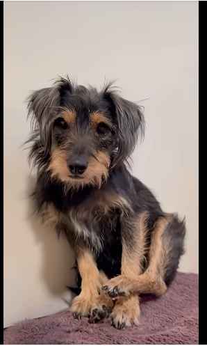 Flip’s first days under her care were anything but easy. He cowered in corners, barked uncontrollably, and snapped like a frightened animal backed into a corner. He wouldn’t let anyone near him, flinching at the slightest movement, reacting with fear instead of trust. Many would have given up—but she didn’t. She spoke to him gently, never raising her voice. She gave him treats, left them close, then gradually nearer and nearer to her hand. Each day, she sat with him quietly, not forcing anything, simply letting him know that she was there and not going anywhere.