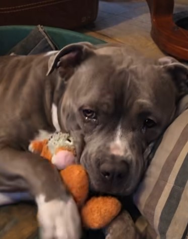 For those who witness him now — lying there with his toy, ears alert, heart aching — it is impossible not to feel the weight of that love. Impossible not to recognize how deeply animals share our lives, our emotions, our sorrows.