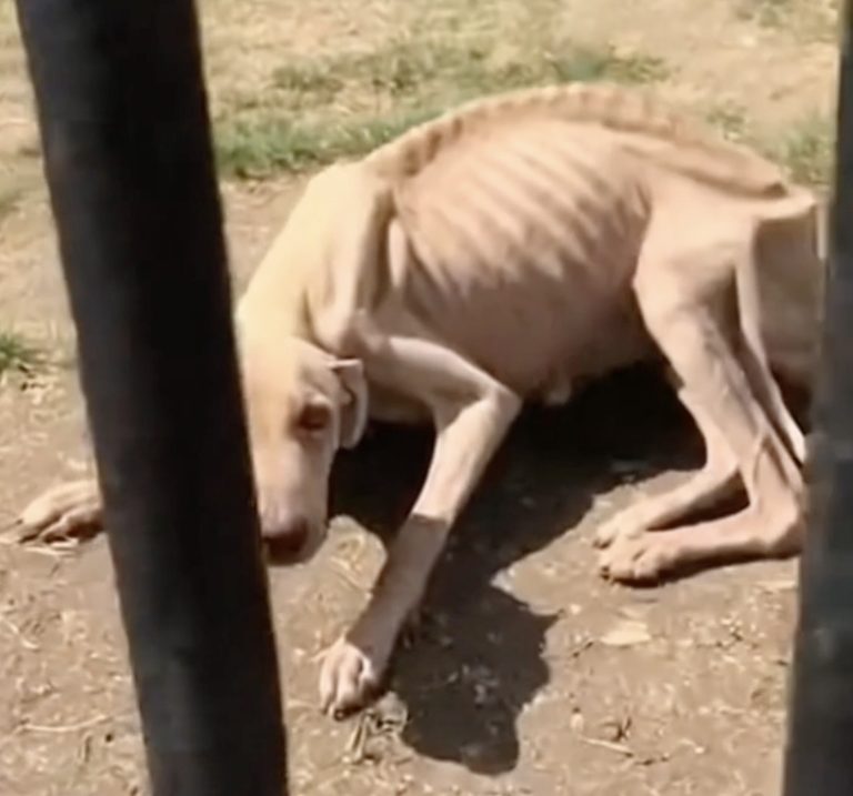 When rescuers first arrived, they expected a frightened, possibly hostile dog. What they found instead shattered their hearts. Bunn was barely able to stand. His ribs jutted out sharply, his legs wobbled with every step, and his eyes—those soft, pleading eyes—held no anger, only pain and confusion. Despite being so mistreated, he didn’t growl or bark. He didn’t bite or lash out. He simply looked up, as if begging for someone, anyone, to finally show him a little kindness.