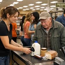 He was small and slightly hunched, wearing a faded navy jacket that had clearly seen better decades. His hands trembled visibly as he carefully placed three items on the conveyor belt: a loaf of store-brand white bread, a small jar of peanut butter, and a single quart of milk. The groceries were so simple, so essentially basic, that they almost hurt to look at—these were the purchases of someone counting every single penny.