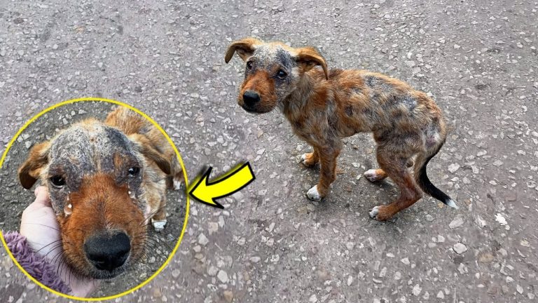 Found alone and trembling on the side of the road, Vito’s tiny frame was barely recognizable as that of a three-month-old puppy. His body was ravaged by mange—red, cracked, inflamed skin stretched over fragile bones, with nearly all of his fur gone. The sight of him could break even the toughest of hearts. His body bore the weight of severe malnutrition, and the countless days he had likely gone without food or warmth were written all over his exhausted eyes.