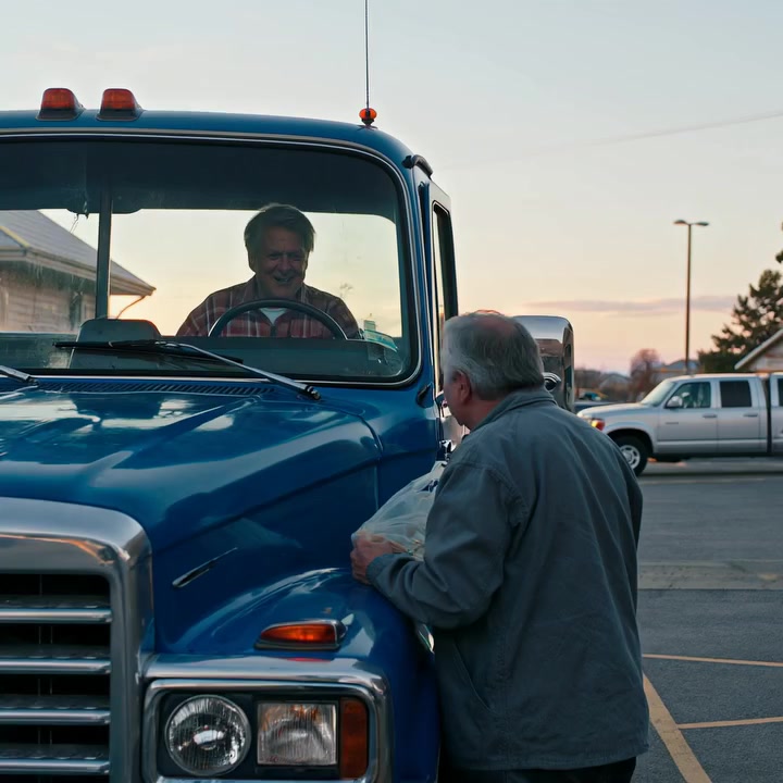 He was leaning out the window of a rig, coffee in his hand. His face was a road map of every highway in the country.