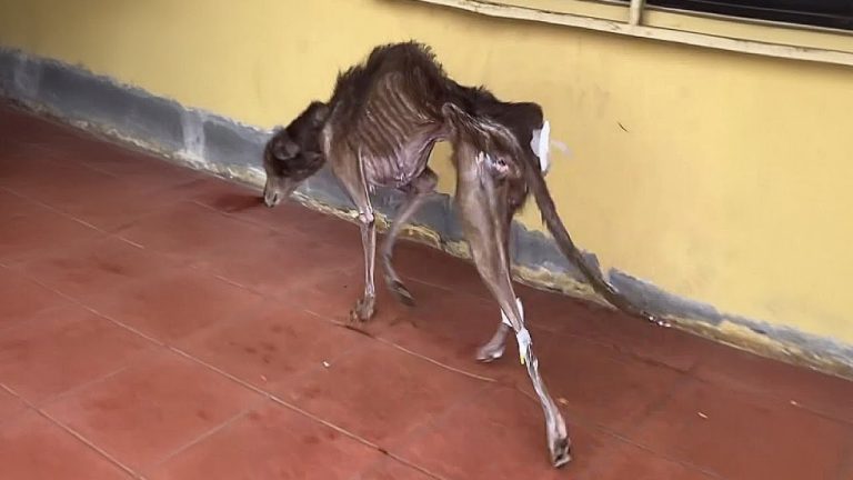By the time help arrived, Ramoncito was barely recognizable. His frail body was all bones, his ribs visibly protruding, his eyes dull with exhaustion and hunger. Starvation had taken its toll, and it seemed his little body had given up the fight long ago. A veterinarian who saw him feared the worst and gently warned that he might not survive the night. It was a moment of unbearable pain—a creature so full of life had been reduced to a shadow.