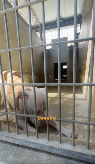 One day, a rescue worker stopped at Sadie’s kennel longer than usual.