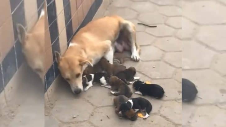 Abandoned Mama Dog Tried To Keep Her Puppies Alive On The Street