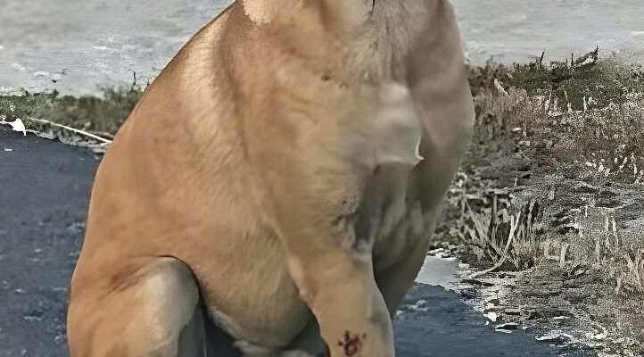 When people first saw him sitting alone near the edge of the cracked village road, they didn’t know his name, his past, or his p.a ìn — only that he looked like a soul who had survived far more than any animal ever should.