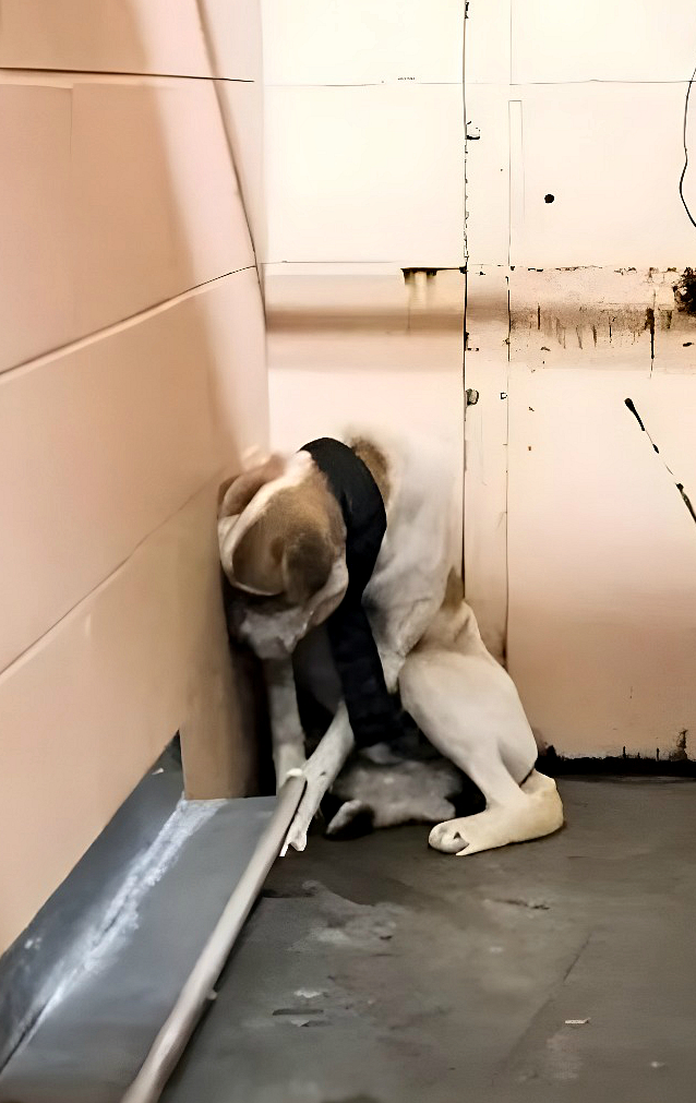 The first days after being transported to the shelter showed the extent of the t.r αuma: Stefan hid in a corner, avoided contact and trembled with fear at the sight of people. Any attempt to approach ended in a growl and retreat, indicating a deep distrust caused by his past experiences. Thus, removing the leather collar without specialized actions was initially impossible.