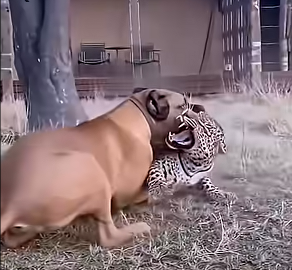 The odds are stacked against the defender. The leopard is a predator built for this exact scenario—speed, stealth, and lethal strength. The big dog is fueled only by loyalty and rage. This image shows the terror of the chase, but only the full video footage captures the kinetic energy and the explosive climax: