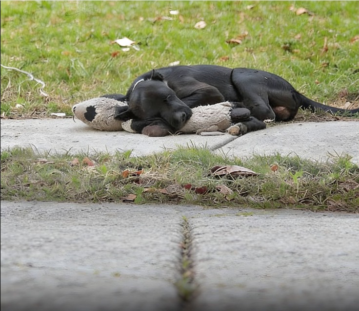 The photographer, Yvette Holzbach share: Here is a stray dog finding comfort in a br.ok.en-down, [a.ban.doned] toy.