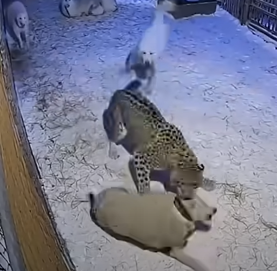 In the photograph, we see the “Ghost of the Mountains” lunging with lethal precision at a fluffy, white sheep standing on a rocky slope. The leopard’s muscles are coiled, its focus is absolute, and it seems like nature is about to take its brutal course. For the leopard, this should have been an easy meal. For the sheep, it should have been the end.