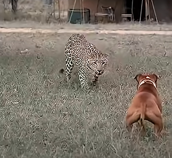 The question posed by the title—”Can the dog rescue the puppy from the leopard’s deadly attack?”—is the core of the drama. Can raw numbers and loyalty overcome the leopard’s superior hunting abilities and lethal training? The image shows the initial collision, but the ensuing chaos and the roar of the animals are impossible to fully capture in words.